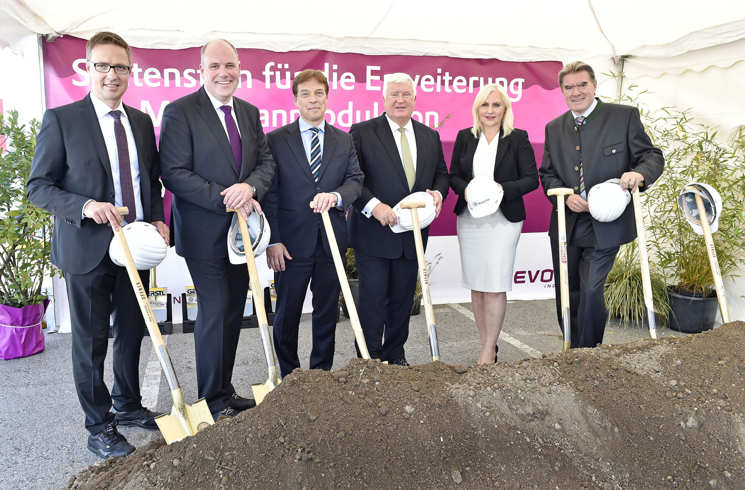 Foto: (a partir da esquerda) Dr. Götz Baumgarten, Diretor do segmento Membranes; Dr. Axel Kobus, diretor da Linha de Produtos Fibres, Membranes & Specialities; Dr. Claus Rettig, presidente da Diretoria Executiva da Evonik Resource Efficiency GmbH; Klaus Engel, Presidente da Diretoria do Board Executivo da Evonik Industries AG; Dr. Mag. Angelika Winzig, membro do Parlamento Austríaco; bem como o Sr. Gerhard Gründl, Prefeito da região de Schörfling am Attersee, simbolicamente deram início às obras de expansão do site em Schörfling (Áustria)