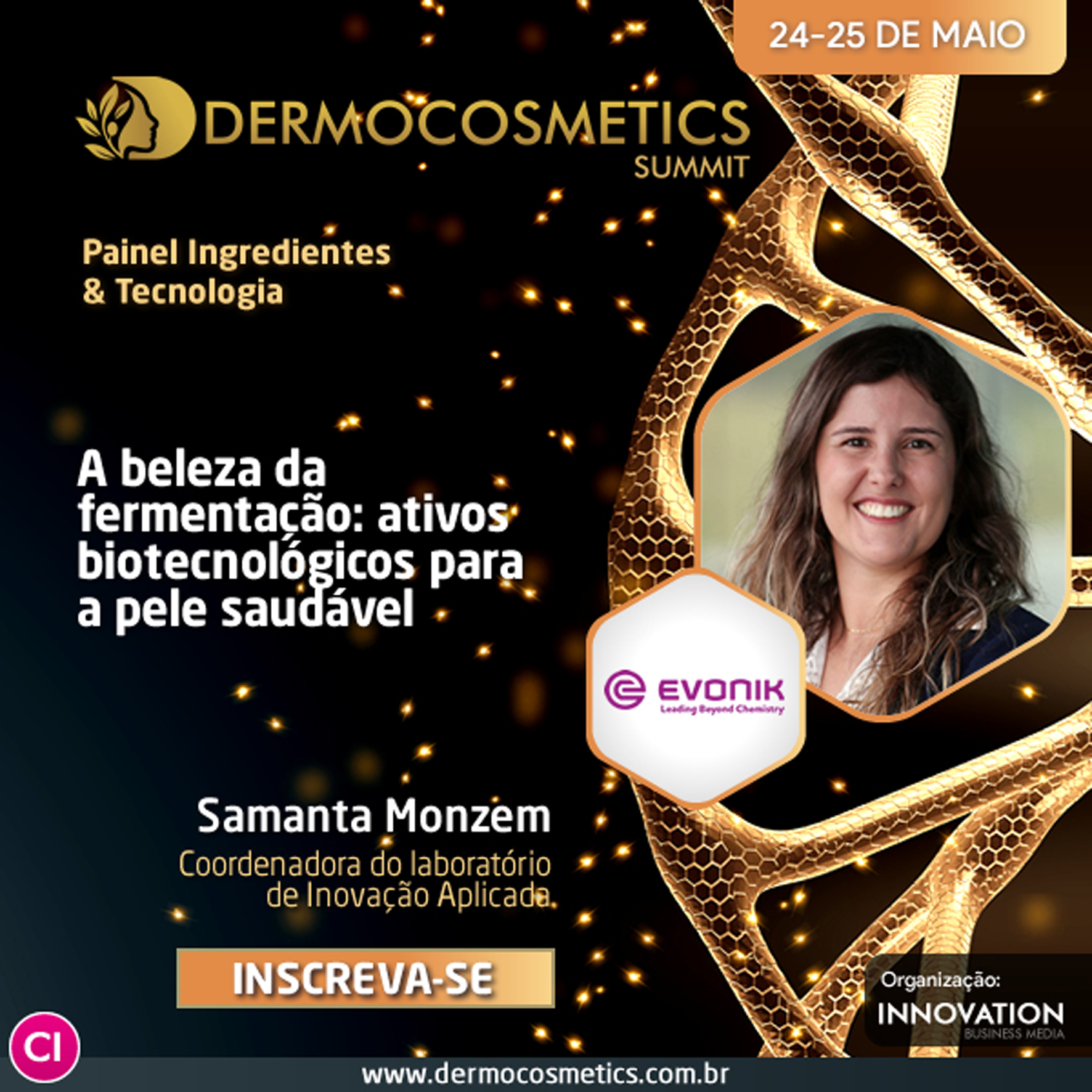 O Dermocosmetics Summit 2023 é organizado pela Innovation Business Media e promovido pelo Portal Cosmetic Innovation. Mais informações sobre o evento podem ser encontradas em https://cosmeticinnovation.com.br/events/dermocosmetics-summit-2023/.