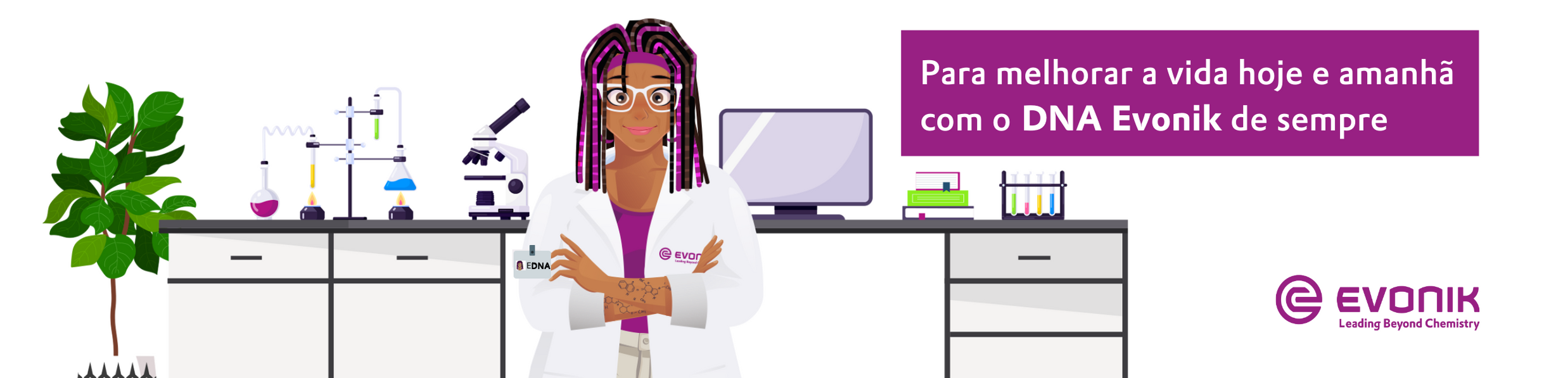 EDNA será a porta-voz de mensagens corporativas importantes sobre o DNA Evonik e, por isso, a campanha inclui interação e engajamento com clientes e parceiros externos por meio das redes sociais e ações de marketing.