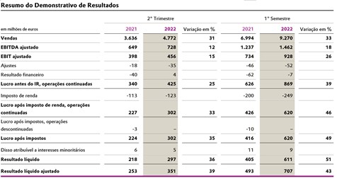 “Tivemos um primeiro semestre vigoroso e, mais uma vez, conseguimos administrar bem os desafios que nos cercavam”, disse Christian Kullmann, Presidente da Diretoria Executiva. “No que respeita às crescentes incertezas, especialmente do lado da energia, entendemos que esses desafios vão continuar e, potencialmente, até se intensificar no segundo semestre do ano”.