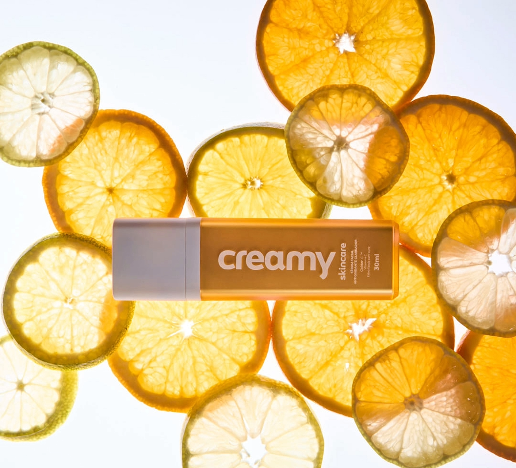 Um exemplo dessa aplicação está no Sérum Facial Vitamina C Gold da Creamy, marca brasileira que se destaca por unir ciência e acessibilidade, democratizando o skincare. A escolha do ingrediente, feita pelo próprio fundador da marca, reflete a aposta em um ativo de alta tecnologia com benefícios visíveis e duradouros.