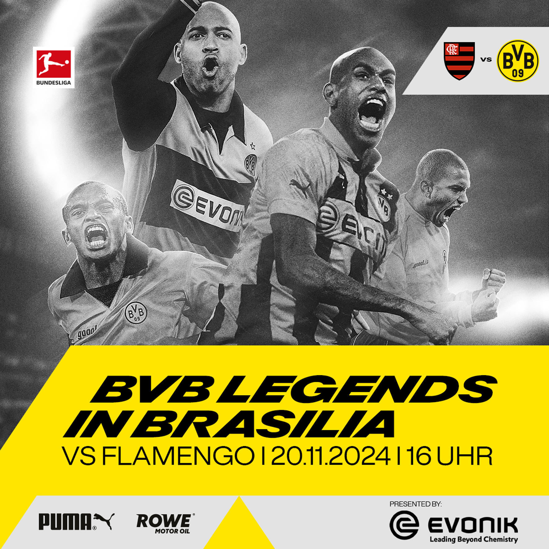 Para o amistoso, estarão no Brasil representando o Borussia Dortmund, vencedores da Copa do Mundo, campeões da Bundesliga e vencedores da DFB-Pokal, como Roman Weidenfeller, Kevin Grosskreutz e Jan Koller, sob o comando dos técnicos Jörg Heinrich e Teddy de Beer. O elenco inclui também sete brasileiros, entre eles o vencedor da Champions League Julio Cesar, e os campeões de 2002 Dedê, Evanilson, Ewerthon e Marcio Amoroso, além de Felipe Santana e Tinga. Ao lado de ícones do Flamengo, eles jogarão uma partida de 70 minutos para mais de 50 mil espectadores.