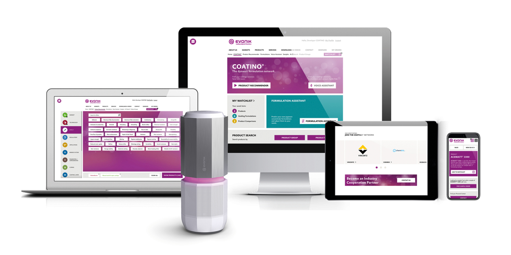 A nova pesquisa de produtos marca o sinal de partida para muitas aplicações digitais novas em benefício da indústria de coatings. Evonik Coating Additives já está em contato com diversas outras empresas do mundo inteiro a fim de acrescentar outros produtos, dados e expertise à rede. Basicamente, qualquer empresa que, com suas soluções, contribui para formulações em revestimentos é bem-vinda para integrar a rede de formulações COATINO®.