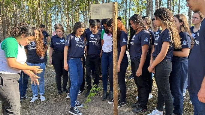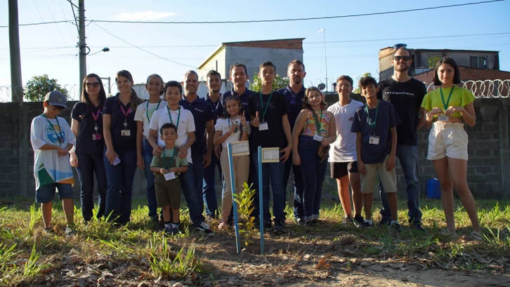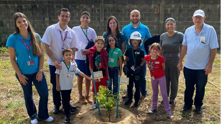 Além disso, conheceram as ações ambientais da empresa e realizam o plantio de uma muda de árvore conhecida como Cabreúva no Jardim da InspirAÇÃO, que fica dentro da planta.