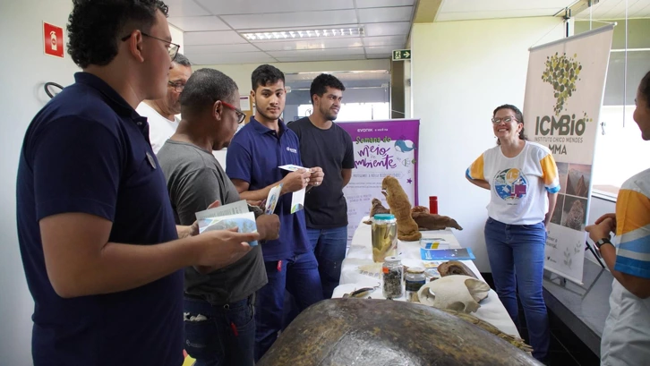 Durante o horário de almoço, as atividades foram voltadas para o público de colaboradores, que ao passar pelo corredor do refeitório, encontravam com a bancada do ICMBIO, onde recebiam informações sobre as unidades de conservação APA Costa das Algas e do Refúgio de Vida Silvestre de Santa Cruz. Além disso, todos puderam se divertir enquanto aprendiam, com jogos e gincanas que valiam prêmios para os vencedores e participantes.