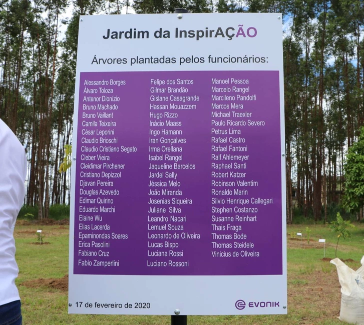 O Jardim da InspirAÇÃO, foi concebido pela Evonik em fevereiro de 2020 para que cada colaborador Evonik da fábrica e colaboradores visitantes de diversas partes do mundo pudessem plantar uma árvore e contemplar ao longo de sua carreira na empresa, o seu desenvolvimento.